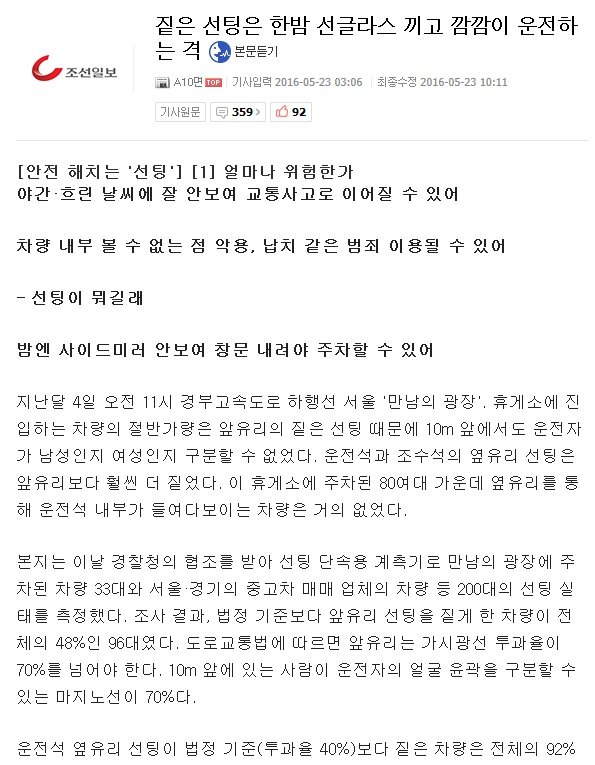 전면썬팅한 차는 길거리의 살인 흉기다.