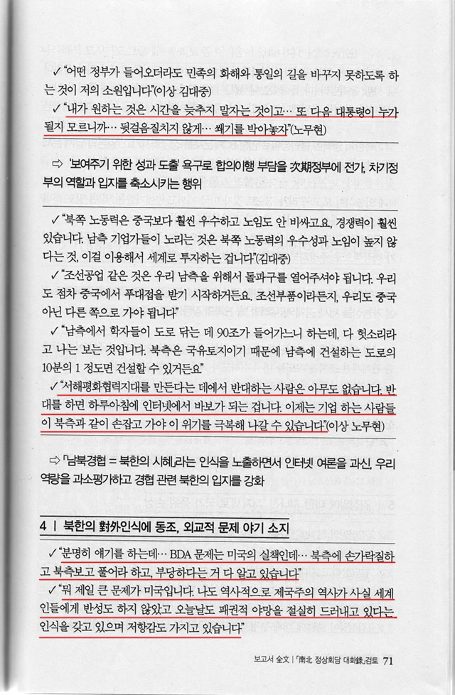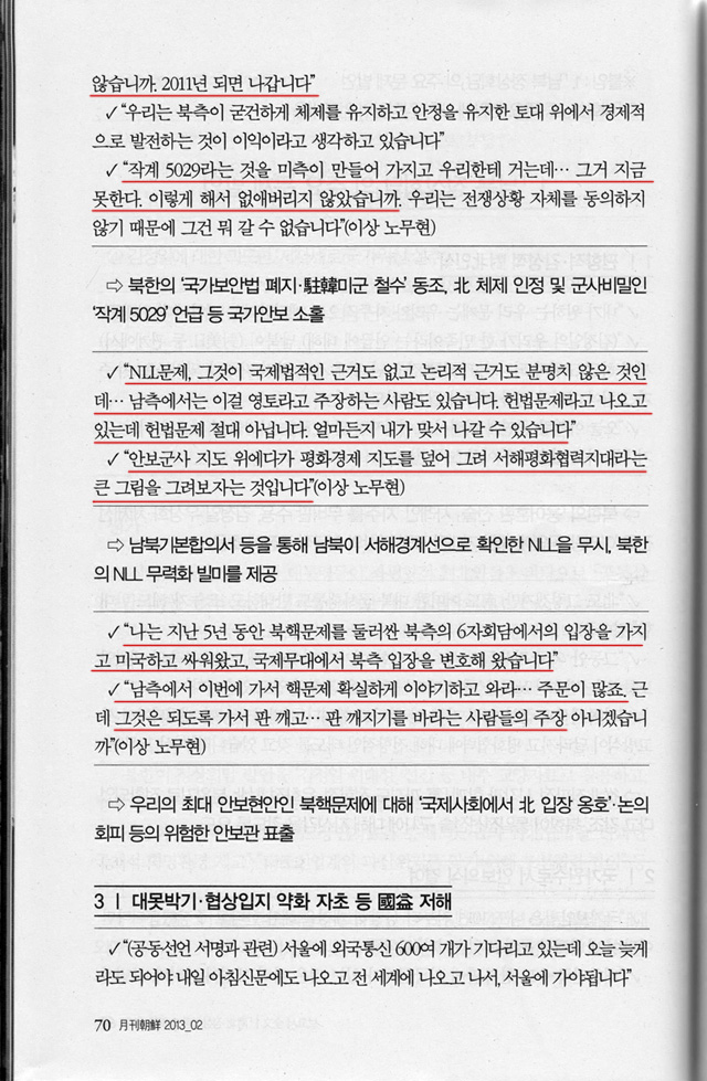 노무현의 발언들 중 심각한 것들을 골라 빨간색 밑줄 쳤다.